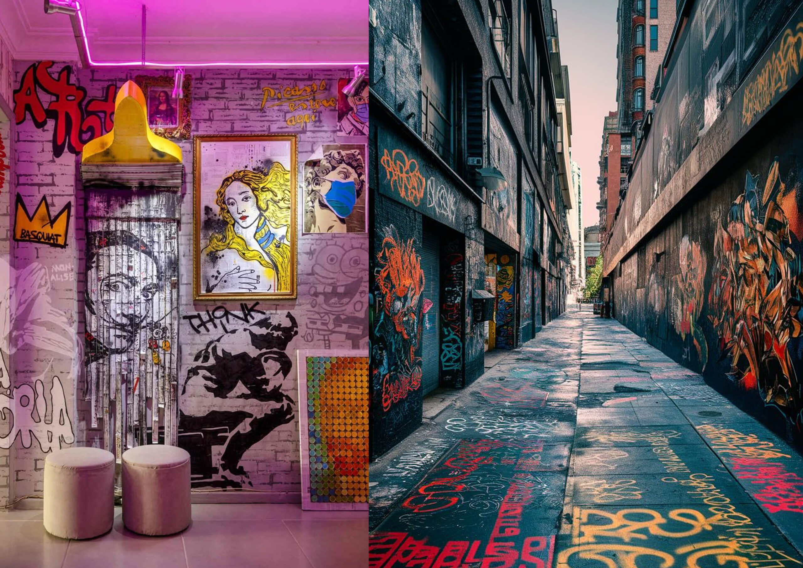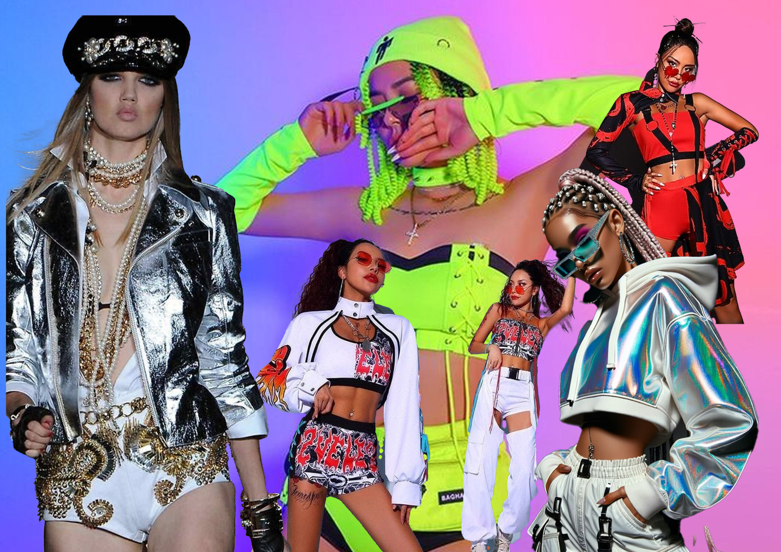 🔹 Color Palette – A bold mix of black, metallics, neon pops, and streetwear prints