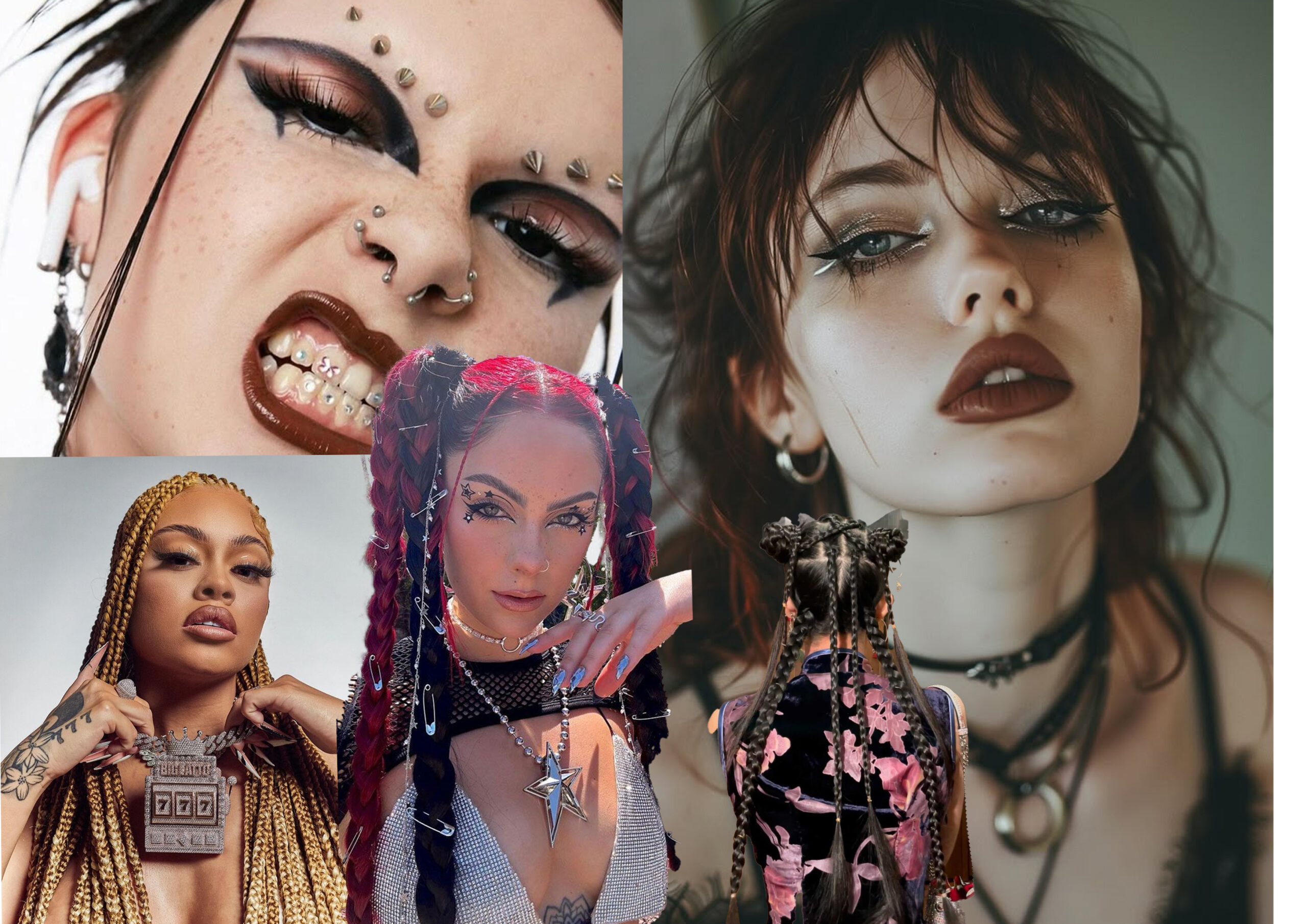 🔹 Accessories – Chunky chains, studded belts, tinted sunglasses, bandanas, and statement boots